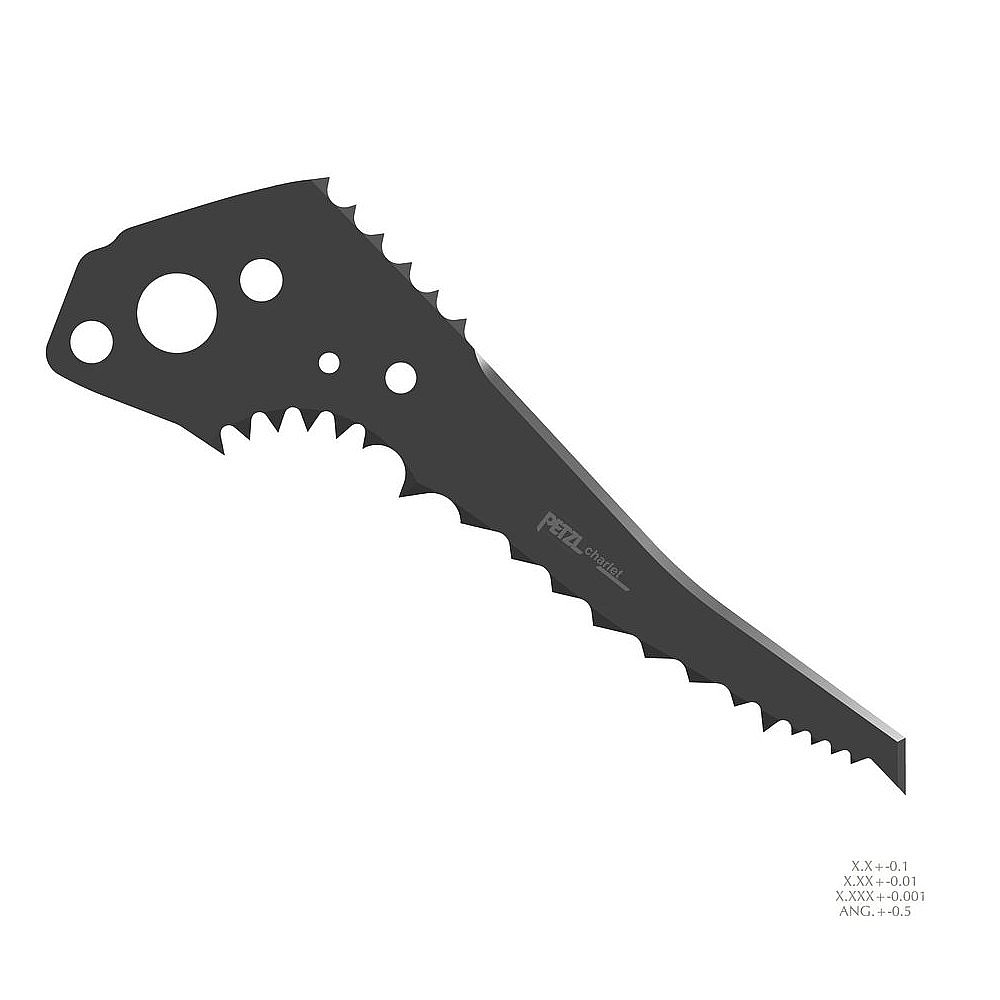 DRY-bladet (4 mm tjock) är speciellt designad för blandad klättring och dry tooling. Avsmalnande i spetsen (3,3 mm) tränger den lätt igenom den kallaste isen. Tänder längs med den nedre kanten, nära skaftet, hjälper till när man hakar på sten eller över isutbuktningar. Tänderna längs den övre kanten hjälper till att stabilisera verktyget när det kammas i ett inverterat läge (steindrag).
